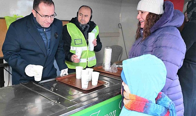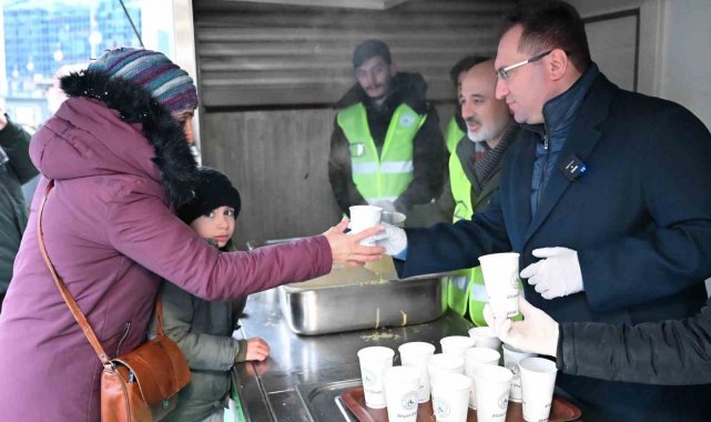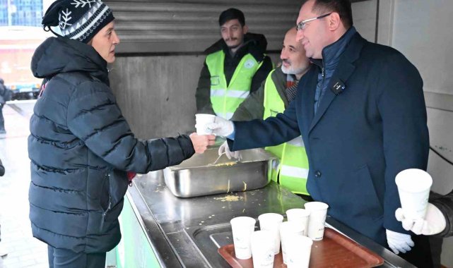 Gaziosmanpaşa Belediyesi ekipleri, soğuk havada vatandaşların mağdur olmaması için sıcak çorba ikram ediyor.