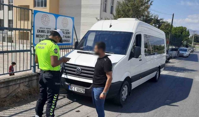 Antalya'nın Gazipaşa ilçesinde yapılan denetimlerde okul servis araçları ve şoförler incelendi, öğrencilere güvenlik kuralları hatırlatıldı.