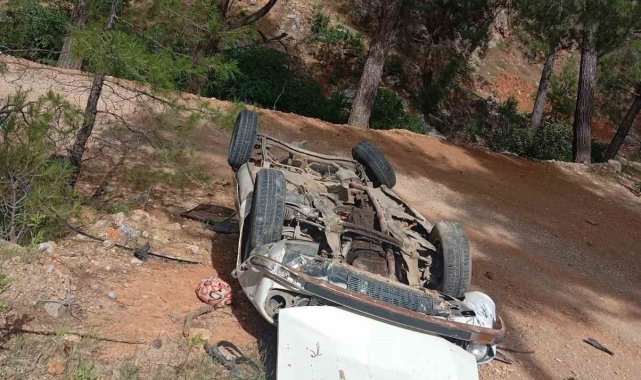 Antalya'nın Gazipaşa ilçesinde kontrolden çıkarak 15 metrelik şarampole devrilen otomobilin sürücüsü yaralandı.