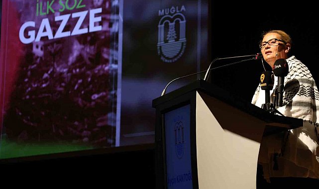 Muğla Sıtkı Koçman Üniversitesi 2025-2026 Eğitim ve Öğretim Yılı akademik Açılış törenine katılan 'Anadolu'dan Gazze'ye' Platformu Başkan Yardımcısı aktivist Ayçin Kantoğlu 'İlk Söz Gazze' konulu konuşma gerçekleştirdi. Muğla Sıtkı Koçman Üniversitesi AKM 15 Temmuz Demokrasi Şehitleri Salonunda konuşan aktivist Ayçin Kantoğlu, "Kendisinin üstün olduğunu iddia eden, başkalarını katledebileceğini, katledebiliyor olduğunu iddia eden, hatta çocukların bile katledebilir olduğunu iddia ediyor. Sayın Cumhurbaşkanı'nın bir tespiti var, İslam dünyası sınıfta kaldı, Batı Devletleri sınıfta kaldı ve sonunda halklardan bir irade ortaya çıktı. Bu organizasyona Mavi Marmara ile başlayan Madleen ve Hanzala ile devam eden ve tam olarak da adını Sumud koydukları bir eylem ortaya çıktı" dedi.
