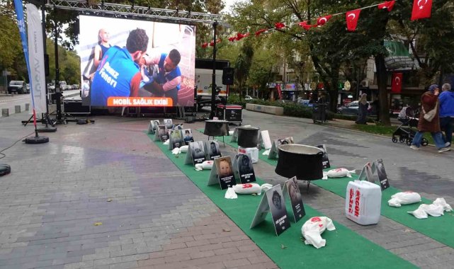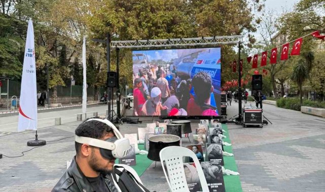 Kocaeli'de açılan "Gazze'ye Açılan Kapı Küçükkefenler Sergisi", savaşın yıktığı bir coğrafyanın dramını sade ama etkileyici bir şekilde anlatıyor. İzmit Yürüyüş Yolu'nda kurulan stantta ziyaretçileri ilk anda derin bir sessizlik karşılıyor. Ardından gelen görüntüler, sesler ve anlatılar, Gazze'de yaşanan yıkımı adeta gözler önüne seriyor. Sanal gerçeklik alanında VR gözlüklerini takan vatandaşlar, birkaç saniye içinde Gazze'nin sokaklarında, molozlar arasında yaşam mücadelesi veren insanların arasına karışıyor. Ziyaretçiler ayrıca LED ekranlardan yapılan canlı bağlantılarla, Gazze'deki ekiplerden günlük durumu öğrenme imkanı da buluyor; böylece savaşın boyutu birebir hissediliyor. Sergi alanında yer alan minik kefenler, çocuk fotoğrafları ve oyuncaklar, savaşın en çok küçük bedenlerde açtığı yaraları hatırlatıyor. Henüz konuşamadan susturulan bebeklerin, hayalini kurduğu okula hiç gidemeyen çocukların acısı, sergi boyunca derinden hissediliyor.