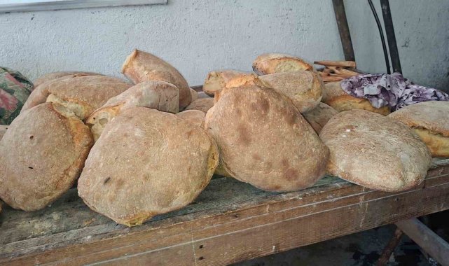 Kütahya'da Gazze halkına destek olmak amacıyla, hayırseverlerin katkılarıyla kadınlar tarafından fırında pişirilen köy ekmekleri satışa sunuldu.