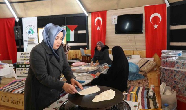 Hayır çarşısında, ev hanımlarının gönüllü katkılarıyla hazırlanan kuru bakliyat ürünleri, börek ve tatlı çeşitlerinin yanı sıra Oltu'ya özgü cağ kebabı, pişi ve gözleme gibi yiyecekler satışa sunuluyor. Elde edilen gelirin Gazze'deki ihtiyaç sahiplerine ulaştırılacağı belirtildi.