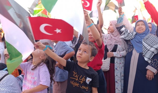 Konuşmacılardan Ümit Boyraz, "Gazze'de çocuklar öldürülürken dünyanın sessizliği utançtır. Gazze'de halk gözlerimizin önünde açıkta soykırıma maruz bırakılmamaktadır. Masum insanlar günlerdir bombaların, açlığın ve susuzluğun pençesinde yaşam mücadelesi veriyor. İnsanlığın vicdanı bu tablo karşısında kan ağlıyor" dedi.