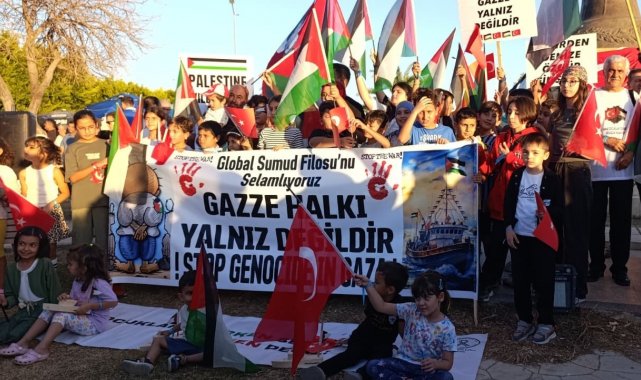 Komite adına konuşan Gülden Korkmaz da, "Bizler burada, uzaktan da olsa, onların yanında olduğumuzu, kalbimizin ve vicdanımızın Gazze halkıyla, Sumud Filosuyla birlikte attığını ilan ediyoruz. Global Sumud Filosu Akdeniz'in mavi sularında ilerlerken aynı zamanda Gazze gibi bir Akdeniz şehri olan Mersin Taşucu'ndan sizleri selamlıyoruz. Sizlerle aynı denizi paylaşmak, aynı gökyüzüne bakmak bizim için bir umut, bir gururdur. Gazze'ye ulaşmak üzere yola çıkan Sumud Filosu, sadece ekmek, ilaç ve yardım taşımıyor; aynı zamanda umut, dayanışma ve adalet taşıyor" dedi.