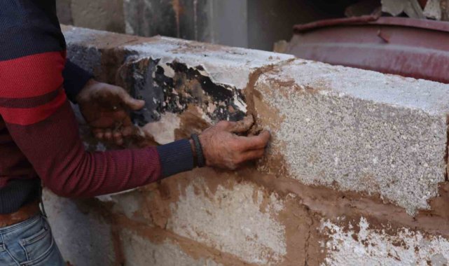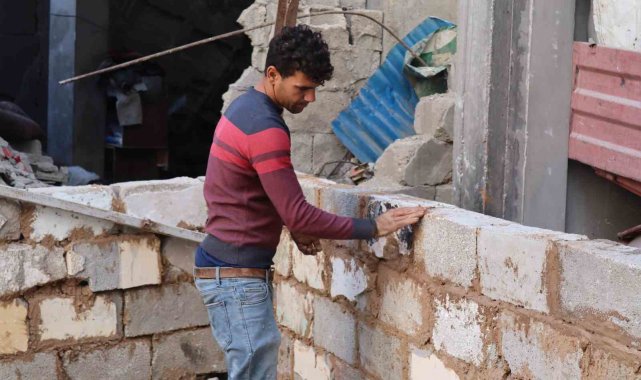 İsrail saldırılarında evi yıkılan Gazzeli Momen Hasaballah, çimento bulamadığı ve onarım maliyetini karşılayamadığı için evini çamur ve yıkıntılardan topladığı taşlarla yeniden inşa etmeye çalışıyor.