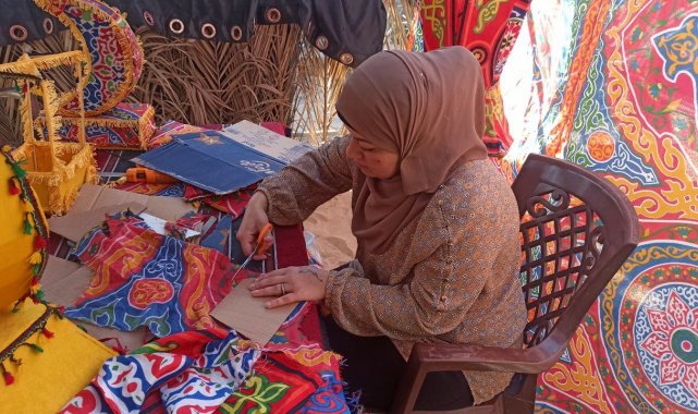Gazze Şeridi'nin Han Yunus kentinde yaşayan Filistinli Reham Şurab, yardım kutularından geleneksel Ramazan feneri yapıyor.