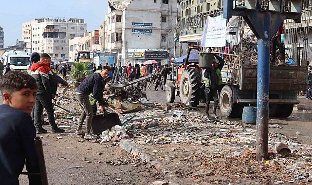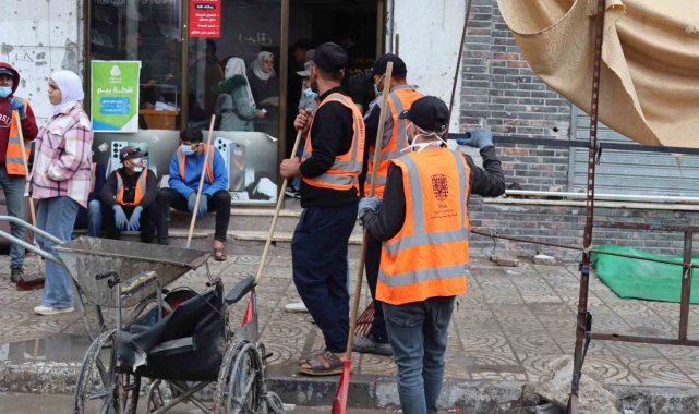 Gazze Belediyesi'nin İsrail saldırılarında büyük yıkım gören şehirde başlattığı "Yeniden İnşa Edeceğiz" kampanyasına katılan gönüllüler, cadde temizliği, enkaz kaldırma ve ağaç dikme çalışmalarıyla şehri yeniden ayağa kaldırmak için seferber oldu.