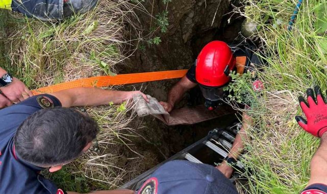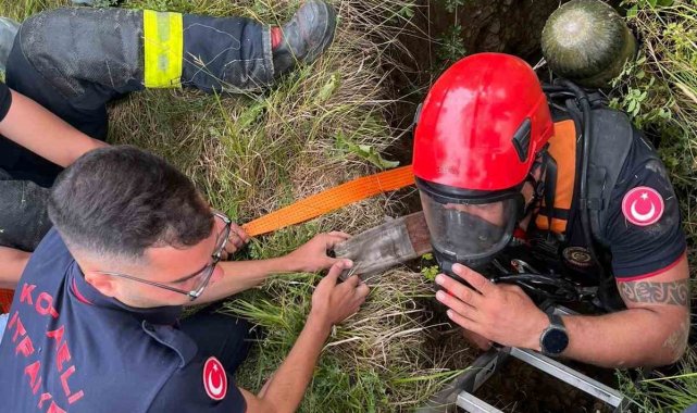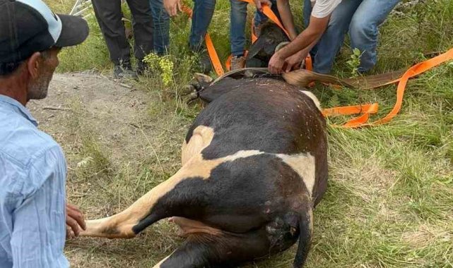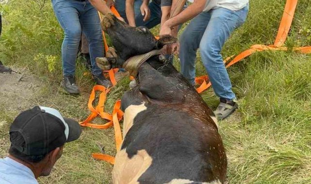 Olay yerine gelen Kocaeli Büyükşehir Belediyesi itfaiye ekipleri, hayvanı kurtarmak için çalışma başlattı. Bölgeye kepçe de sevk edilirken, güvenlik önlemlerini alan bir itfaiye eri kuyuya indi. Halatlarla bağlanan inek, yaklaşık 3 saat süren titiz bir operasyonun ardından yara almadan kurtarıldı.