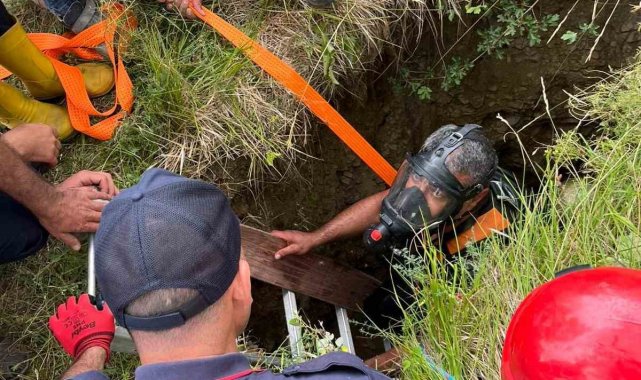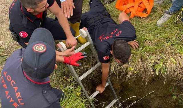 Yaşananları anlatan Cevdet Yılmaz, "Defineciler burayı kazmış, üstünü de kapatmamışlar. Benim ineğim oraya düşmüştü. Sağ olsunlar, Kocaeli itfaiyesine teşekkür ederiz. İneği çıkardılar, var olsunlar. Hayvanım 5 saattir mahsurdu. İtfaiye ekipleri yaklaşık 3 saat uğraştı" dedi.