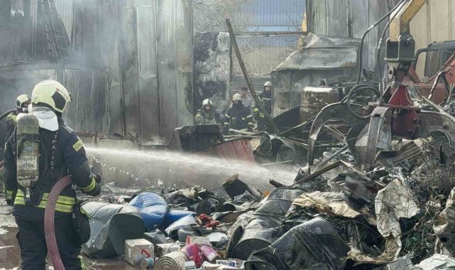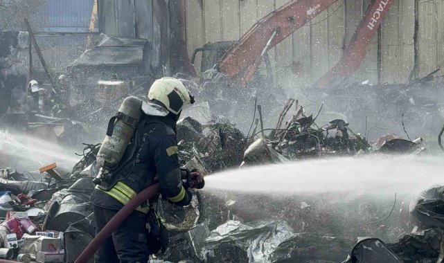 Kocaeli'nin Gebze ilçesinde hurdalık alanda çıkan yangın sebebiyle gökyüzü siyaha büründü. Yangın itfaiye ekipleri tarafından söndürülürken, depoda mahsur kalan köpek ise kurtarıldı.