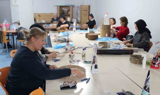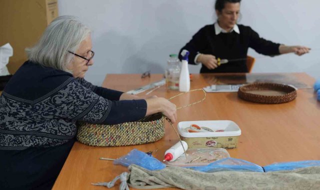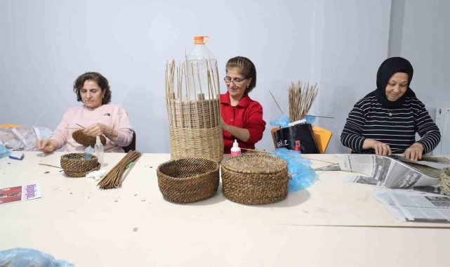 Güzel Sanatlar ve Meslek Eğitimi Kursları'nda eğitim gören kursiyerler, atık kağıtları sepet, çanta, supla gibi ürünlere dönüştürerek birinden farklı sanat eseri ortaya koyuyor.