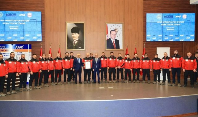 Asrın felaketinde görev alan ve 22 kişiyi enkazdan sağ çıkaran Gebze Belediyesi Arama Kurtarma Ekibi'ne AFAD Akreditasyon Sertifikası ve armaları takdim edildi.