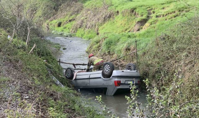 Olay, Düzce'nin Soğukpınar Mahallesi Mera yolu üzerinde yaşandı. Edinilen bilgilere göre, dere içerisinde ters dönmüş 34 TT 7602 plakalı otomobili fark eden vatandaşlar durumu acil çağrı merkezine ihbar etti. Olay yerine giden Düzce Belediyesi İtfaiye Müdürlüğü ve 112 Acil Ambulans ekipleri araçta birilerinin olup olmadığını kontrole etti. İtfaiye yardımıyla kaldırılan aracın içinde kimsenin olmadığı tespit edilince ekipler de olay yerinden ayrıldı. Diğer yandan aracın gece saatlerinde dere içine düştüğü ve sürücünün aracı bırakarak gittiği tespit edildi.