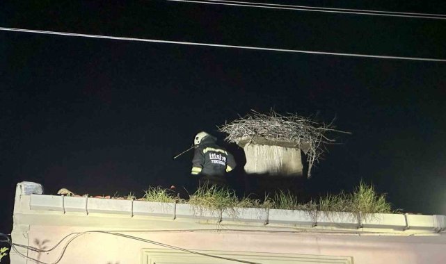 Yangın çıktığı evin çatısında bulunan leylek yuvası da itfaiye ekiplerinin hassas müdahalesiyle zarar görmeden yan alana taşındı. Ekiplerin bu duyarlı çalışması çevredeki vatandaşların takdirini topladı. Yangının kontrol altına alınmasının ardından söndürme ve soğutma çalışmaları başlatılırken, olayla ilgili inceleme sürüyor.