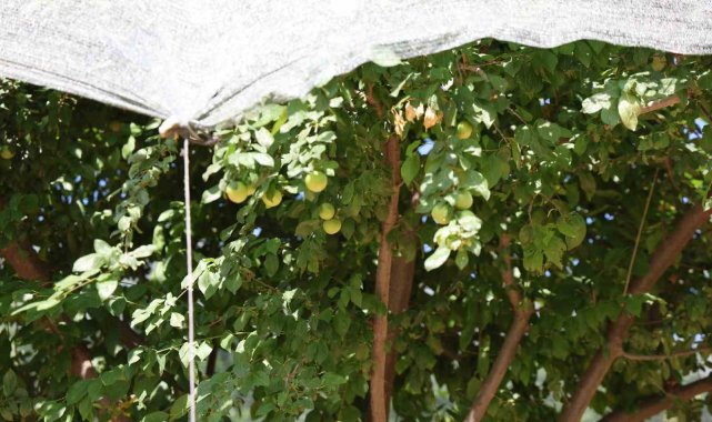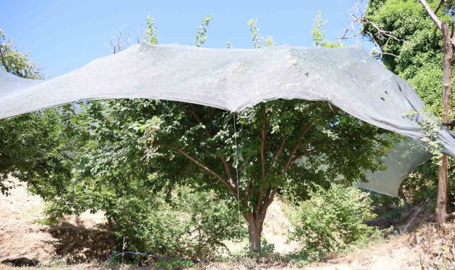 Aydın ve İzmir dağlarındaki yaylalarda az miktardaki erik meyvesini koruyabilmek için çiftçiler ağaçların üzerine yeşil file gererek ürünleri doğal haliyle saklamaya çalışıyor.