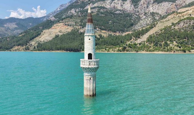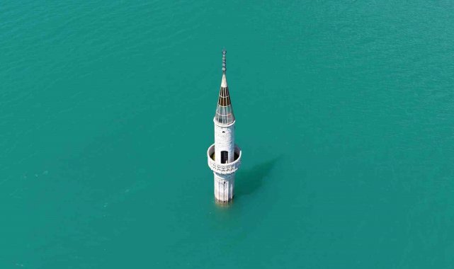 Öte yandan, baraj gölü üzerinde yalnız başına yükselen minare, su yüzeyindeki yansımasıyla dikkat çekiyor. Dron ile kaydedilen görüntüler, hem doğadaki değişimi hem de sular altında kalan bir yerleşimin izlerini gözler önüne sererken, ortaya çıkan manzara geçmiş ile bugünün aynı karede buluştuğu etkileyici bir görüntü sunuyor.
