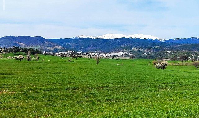 Kütahya'nın Gediz ilçesinde baharın gelişiyle birlikte doğa adeta uyanışa geçti. Akdağ eteklerinden Murat Dağı yaylalarına kadar uzanan geniş coğrafya, kışın ağırlığını üzerinden atarak yeşilin, morun ve pembenin her tonunu içeren eşsiz bir renk cümbüşüne büründü. Adeta bir tablodan fırlamış gibi görünen bu eşsiz manzara, görenleri kendisine hayran bırakıyor.