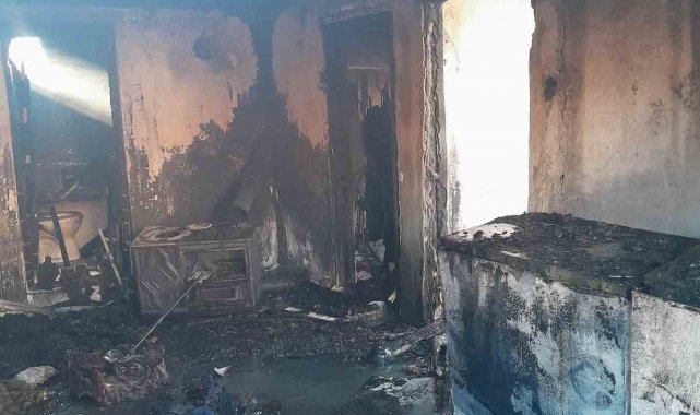 Kütahya'nın Gediz ilçesinde çıkan yangın sonrası iki katlı ahşap bir ev kullanılamaz hale geldi.