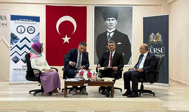 Başkan Akel, "Kürsü Okuma Kulübü'nün katkılarıyla, Kütahya Dumlupınar Üniversitesi Rektörü Prof. Dr. Süleyman Kızıltoprak'ın konuşmacı olarak yer aldığı 'Düşüncenin Kürsüsünde Buluşalım' programına katılım sağladık. Etkinlikte Evelyn Baring'in kaleme aldığı ve Rektörümüz tarafından Türkçeye kazandırılan 'Modern Mısır' adlı eser üzerine değerlendirmelerde bulunuldu. Gediz Meslek Yüksekokulumuzda gerçekleştirilen bu verimli buluşmada, değerli fikir ve tecrübelerini bizlerle paylaşan Sayın Rektörümüze ve Kürsü Okuma Kulübü'ne teşekkür ediyorum" ifadelerini kullandı.