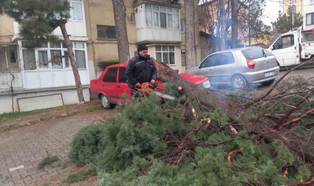 Gediz'de şiddetli rüzgar ağaçları devirdi, binalarda hasara sebep oldu