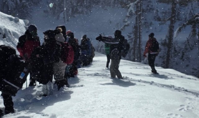 Gediz Murat Dağı Termal ve Kayak Merkezinde kar yürüyüşü