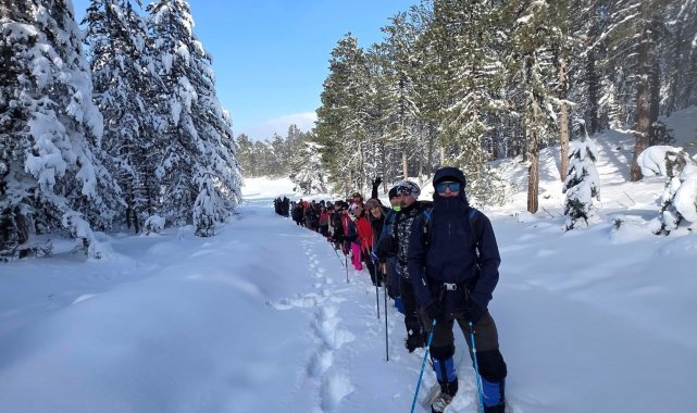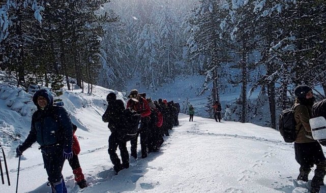 Kütahya'nın Gediz ilçesinde bulunan Murat Dağı Termal ve Kayak Merkezi'nde kar yürüyüşü gerçekleştirildi.