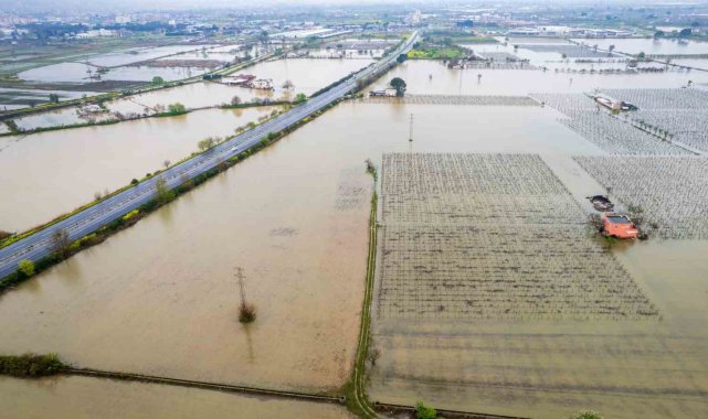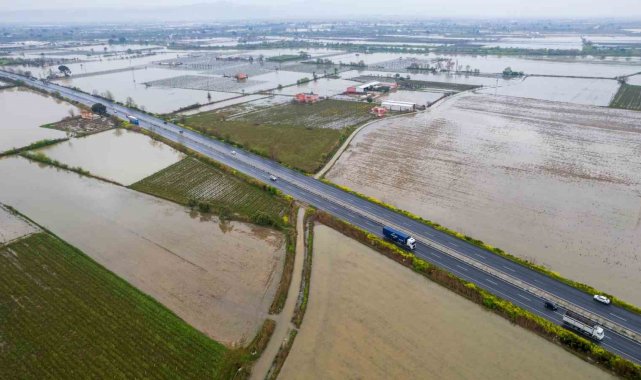 Öte yandan Gediz Nehri'nde yaşanan taşkın havadan görüntülendi.
