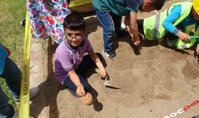 Geleceğin arkeologları olan minikler, Yozgat Müzesi'nde örnek kazı yaptı
