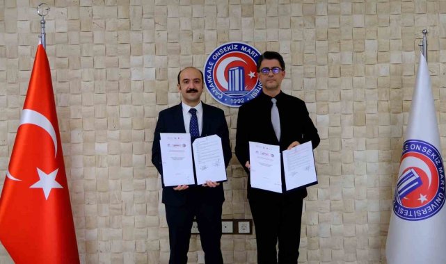 "Türkiye Siber Vatan Programı İş Birliği Protokolü" imza töreni, ÇOMÜ Rektörü Prof. Dr. R. Cüneyt Erenoğlu ve GMKA Genel Sekreteri Onur Adıyaman'ın katılımlarıyla gerçekleştirildi.