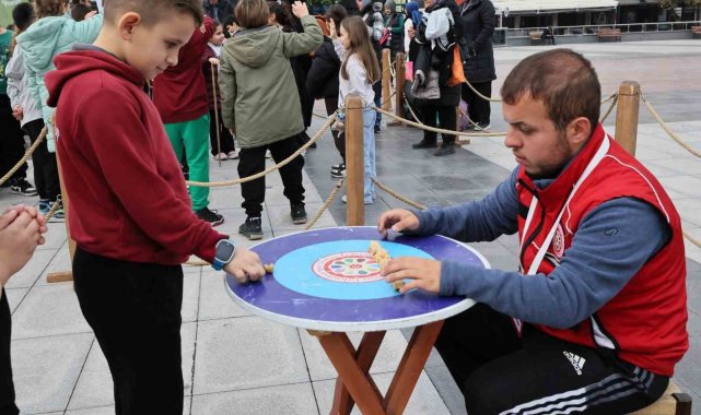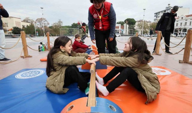 Manisa Cumhuriyet Meydanı'na konuşlandırılan tırda bir araya gelen öğrenciler, gün boyunca geleneksel oyunları deneyimleme fırsatı buldu. Yaklaşık 3 bin öğrenci; mangala, mas güreşi, çemberbaz, 12 taş, halat çekme, kale oyunu, aşık oyunu, çember çevirme, çuvalda zıplama ve koca ayak gibi pek çok geleneksel oyunu oynayarak doyasıya eğlendi.