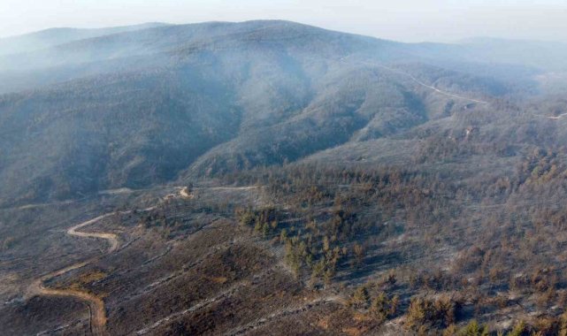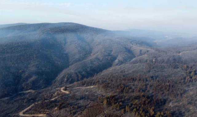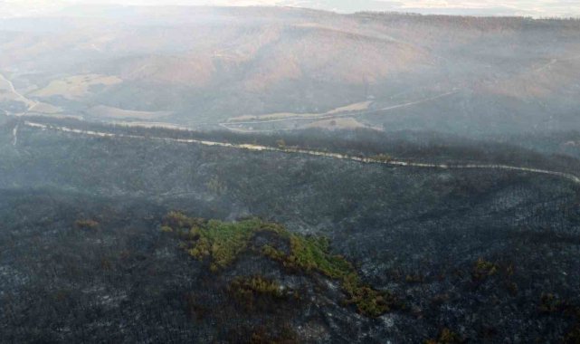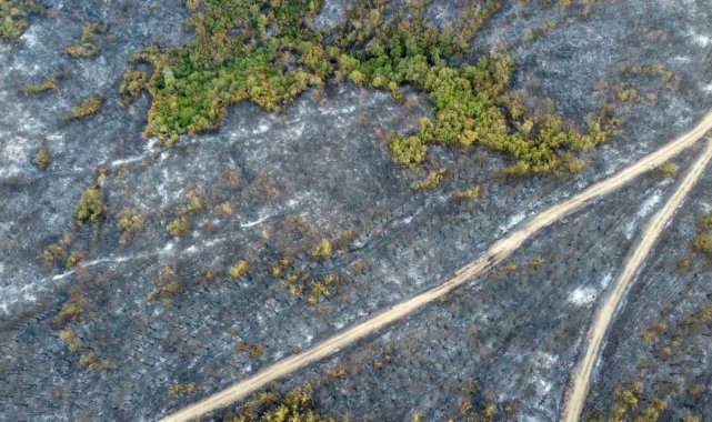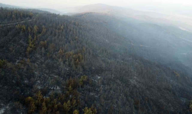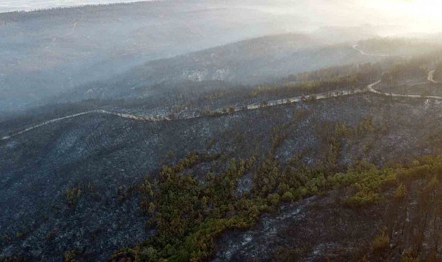 Gelibolu'da büyük ölçüde kontrol altına alınan orman yangınında yanan yerler dronla görüntülendi