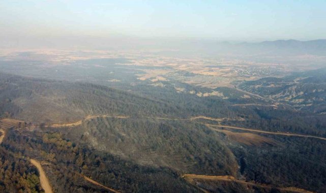 Çanakkale'nin Gelibolu ilçesinde çıkan orman yangını büyük ölçüde kontrol altına alındı. Yanan yerler dronla görüntülendi.
