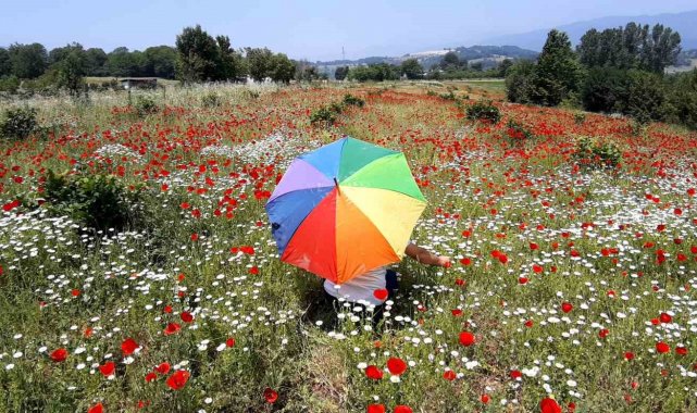Gelincik ve papatya tarlası fotoğraf tutkunlarına görsel şölen sunuyor