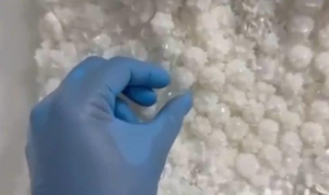 Gelinliğin üzerine boncuk şeklinde işlenmiş 25 kilo uyuşturucu ele geçirildi