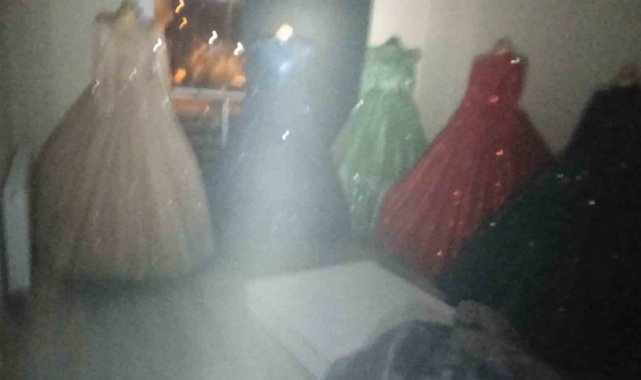 Gelinlikçide çıkan yangında yüzlerce gelinlik yanarak kül oldu