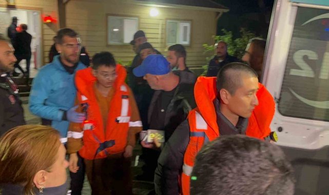 Kocaeli'nin Kandıra ilçesi Kefken açıklarında yangın çıkan yabancı menşeli gemideki 25 personel karaya çıkartıldı.