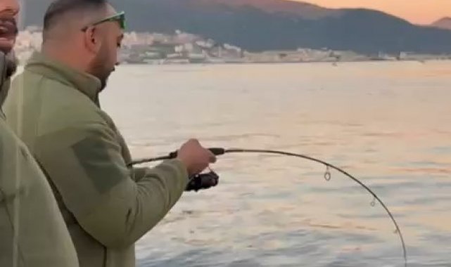 Gemlik Körfezi'nde denize açılan balıkçılar, oltalarına takılan canlının köpek balığı olduğunu fark etti. Kısa süreli şaşkınlık yaşayan balıkçılar, dikkatli bir şekilde köpek balığını tekneye almayı başardı.