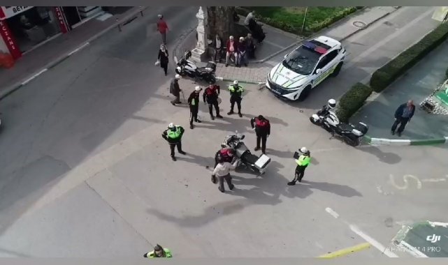 Gemlik'te Motosiklet kazalarının önlenmesine yönelik eylem planı çerçevesinde trafik güvenliğini artırmak hedefiyle, dronlu denetimler sıkılaştırıldı.