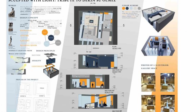 Birinci sınıf kategorisinde Emir Furkan Gönenç, "Tribute to Derin Su Ölmez" başlıklı müze iç mekân tasarımı projesiyle mansiyon ödülüne değer görüldü. Ermeni kökenli bir kuyumcu ailesinin kızı olan Derin Su Ölmez'in yaşam öyküsünden ve Beyoğlu ile Galata'nın tarihî dokusundan ilham alan proje, dik yokuşlar ve katmanlı kent yapısını mekânsal kurguya taşıyor.Proje, Beyoğlu ve Galata'nın tarihsel ve mekansal katmanlarından esinlenerek ziyaretçi dolaşımını farklı kotlarda süreklilik sağlayan rampa sistemi üzerinden kurguluyor. Tasarım, bireysel hafıza ile kentsel belleği mekansal bir deneyim aracılığıyla bir araya getirmeyi amaçlıyor.