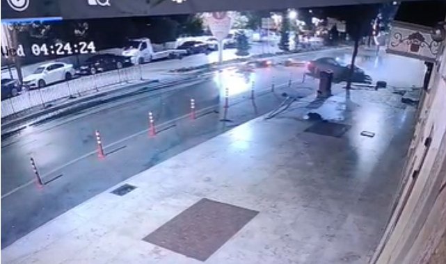 Kazayı otomobilin arkasından motosikletiyle takip eden kadın sürücü de izlerken, refüj sulaması nedeniyle kayganlaşan yolda kontrolünü yitirerek motosikletiyle birlikte refüje düştü. Çarpmanın ardından birkaç metre toprak zeminde sürüklenen kadın, kazayı hafif sıyrıklarla atlattı. Sürücü olay sonrası bulunduğu yerden kalkarak motosikletiyle birlikte bölgeden ayrılırken, o anlar çevredeki bir iş yeri kamerasına yansıdı.
