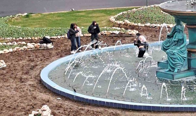 Genç kızlar dondurucu soğukta süs havuzuna atladı