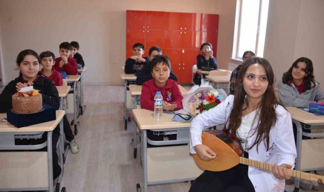 Tören sonrasında Hacer İçoğlu, öğrencileriyle yaptığı ilk derste eline bağlamasını alarak kısa bir müzik dinletisi gerçekleştirdi. Öğrencilerin çoşkulu katılımıyla geçen ders, genç öğretmenin mesleğe içtenlikle bağlandığını bir kez daha ortaya koydu. Sınıf ortamında çekilen fotoğraflar, öğrencilerin dikkatle dinlediği, sorular sorduğu ve derse aktif katılım gösterdiği keyifli anları yansıttı.