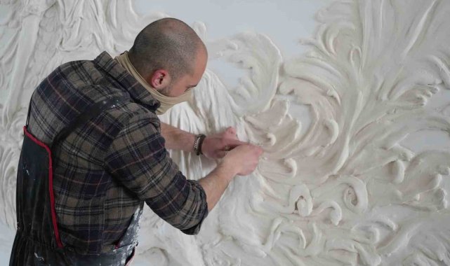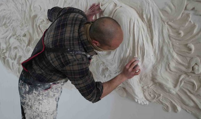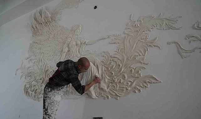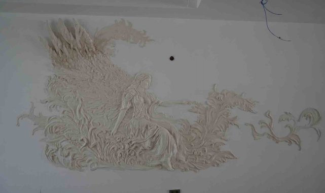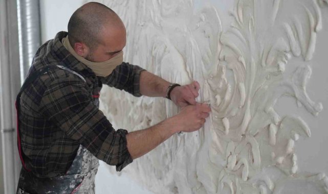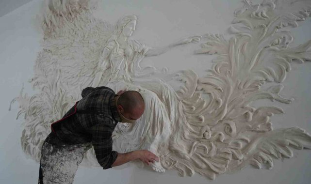 Genç sanatçı alçıyla duvarları resim tablosuna dönüştürüyor