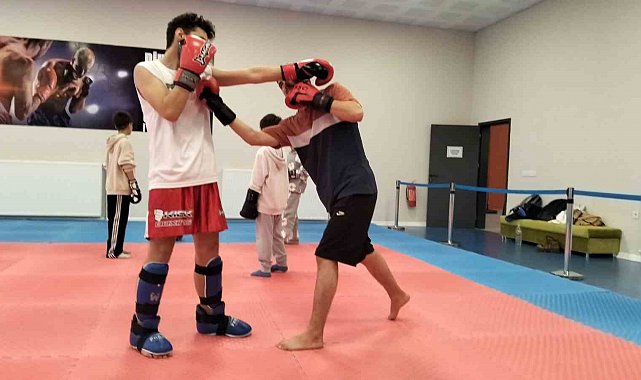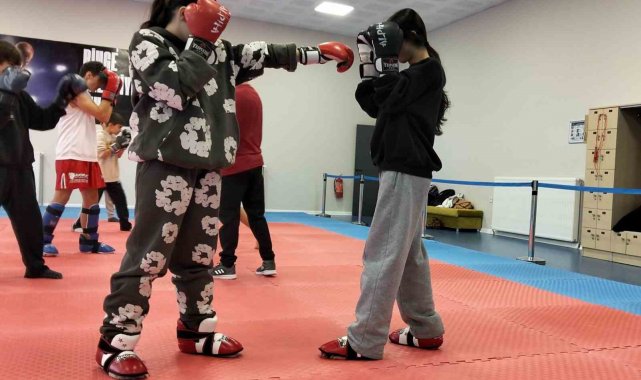 Genç sporcular Kick Boks ile zamanlarını sporla değerlendiriyor