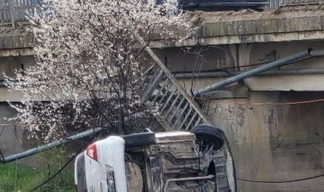 Genç sürücü ölümden döndü: Kontrolden çıkan araç köprüden uçtu, 1 yaralı
