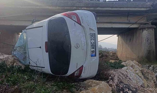 Bursa'nın İnegöl ilçesinde kontrolden çıkan hafif ticari aracın köprü korkuluklarını kırarak dere yatağına uçtuğu kazada sürücü yaralandı.