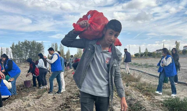 Gençler, "Gönüllü Hasat Projesi" kapsamında patates hasadı yaptı