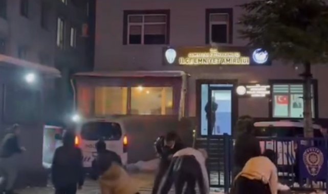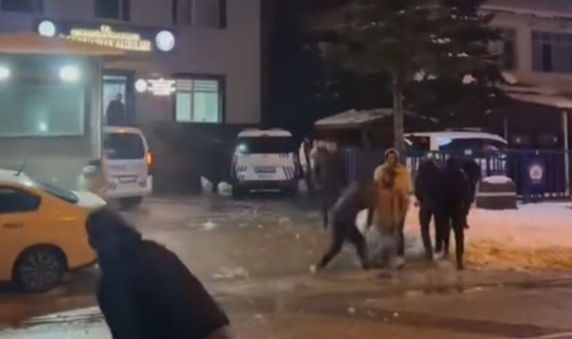 Gençler karakolda polislerle kartopu oynadı