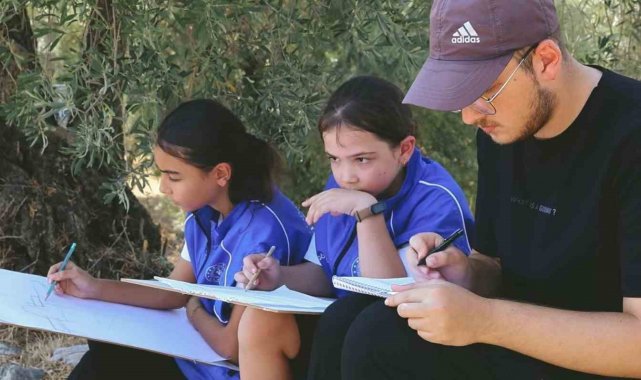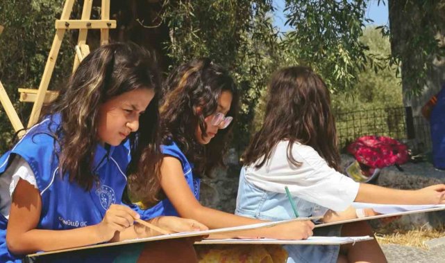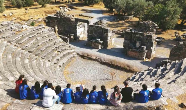 Yenipazar Gençlik Merkezi gönüllüleri, Sultanhisar'daki Nysa Antik Kenti'nde gerçekleştirdikleri resim dersinde tarihi mirası tuvallerine aktardı.